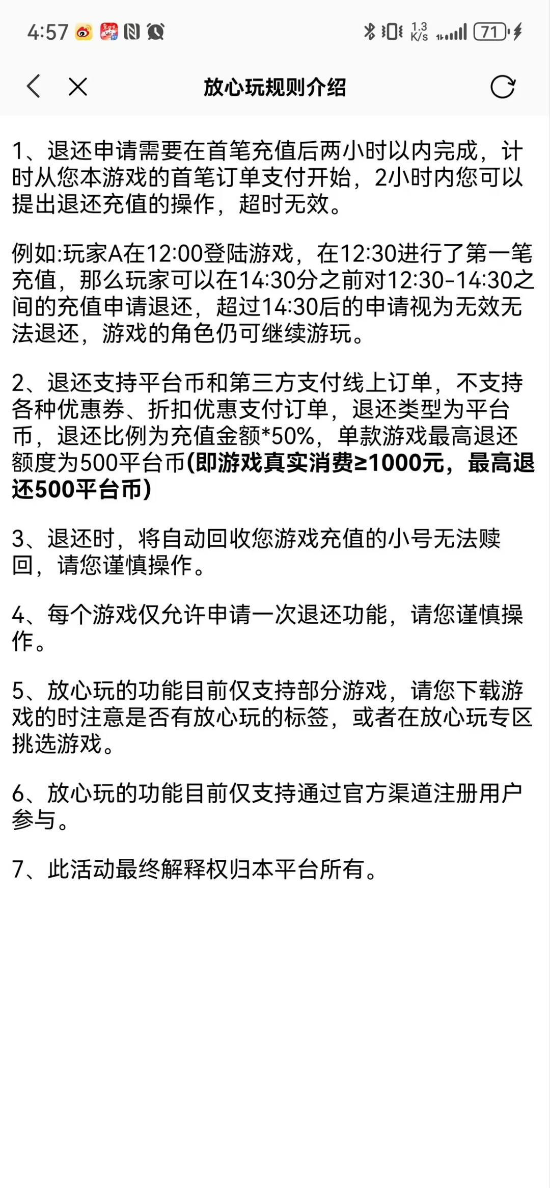 退款时,风控系统调用 “退款金额计算服务”,根据规则计算可退金额(例如:可退金额 = (微信支付部分 * 50%) + 平台币部分,且平台币部分封顶500)。